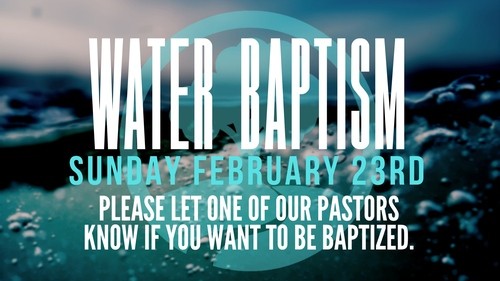 Join us for our church baptism February 23rd! Bring your family and friends. If you would like to be baptized please contact our office at 620-255-3077.